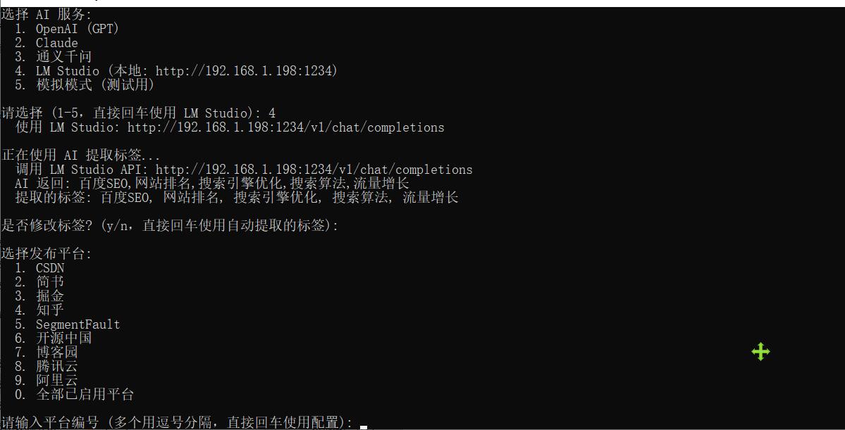 然后运行本程序,他自动连接到你的大模型,自动创作,自动发布